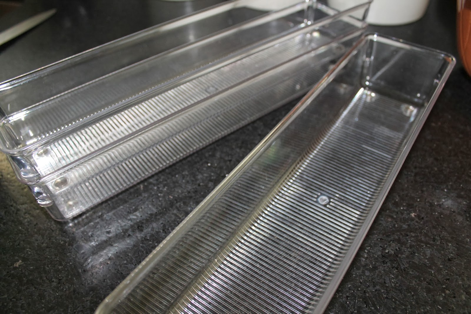 I find these plastic kitchen drawer organizers work great to store these in.
